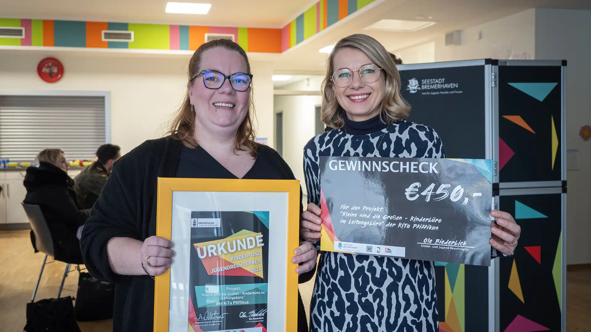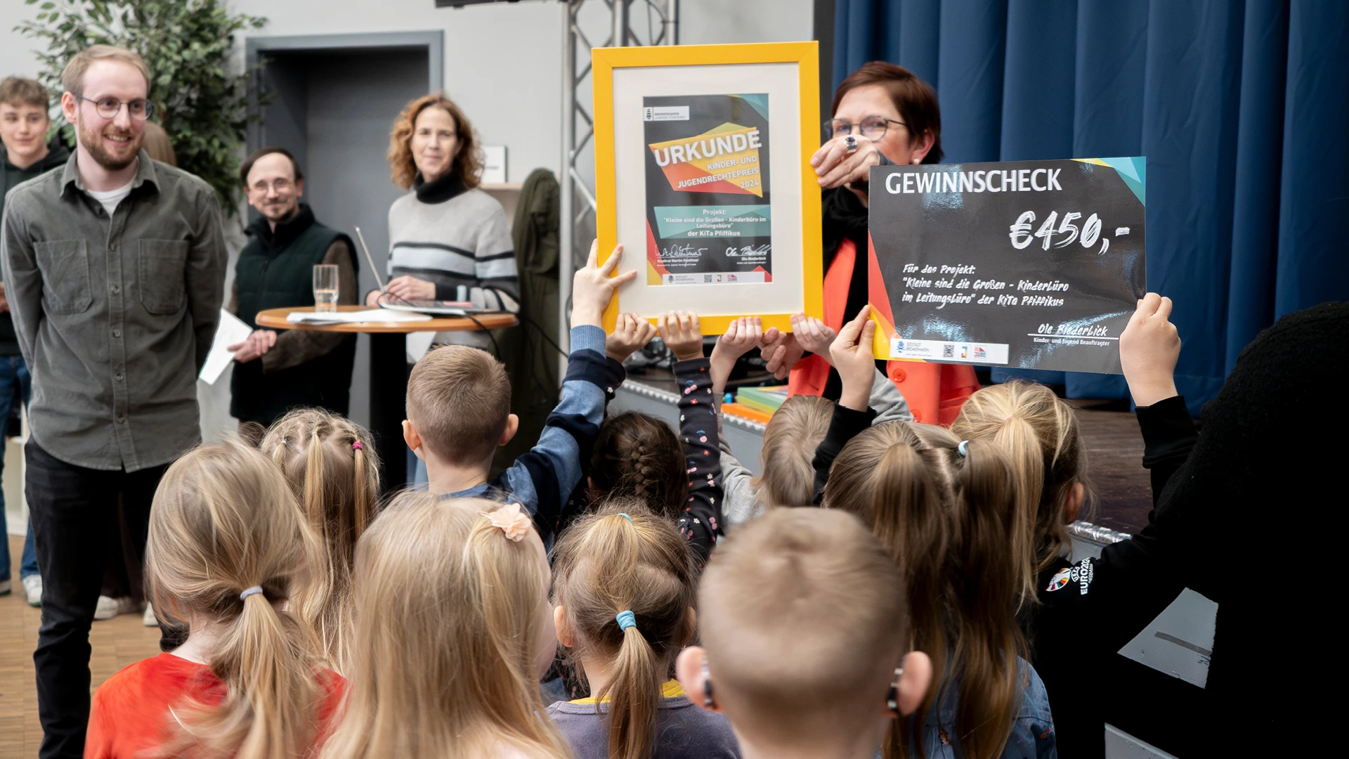 Die Jungen und Mädchen aus der AWO-Kindertagesstätte „Pfiffikus“ standen zu Beginn der jüngsten Sitzung des Bremerhavener Jugendhilfeausschusses im Mittelpunkt – sie nahmen mit Kita-Leiterin Virginia Mibert den Kinder- und Jugendrechtepreis 2024 entgegen. Und dafür gab es neben reichlich Applaus auch ein Preisgeld von 450 Euro. Herzlichen Glückwunsch!