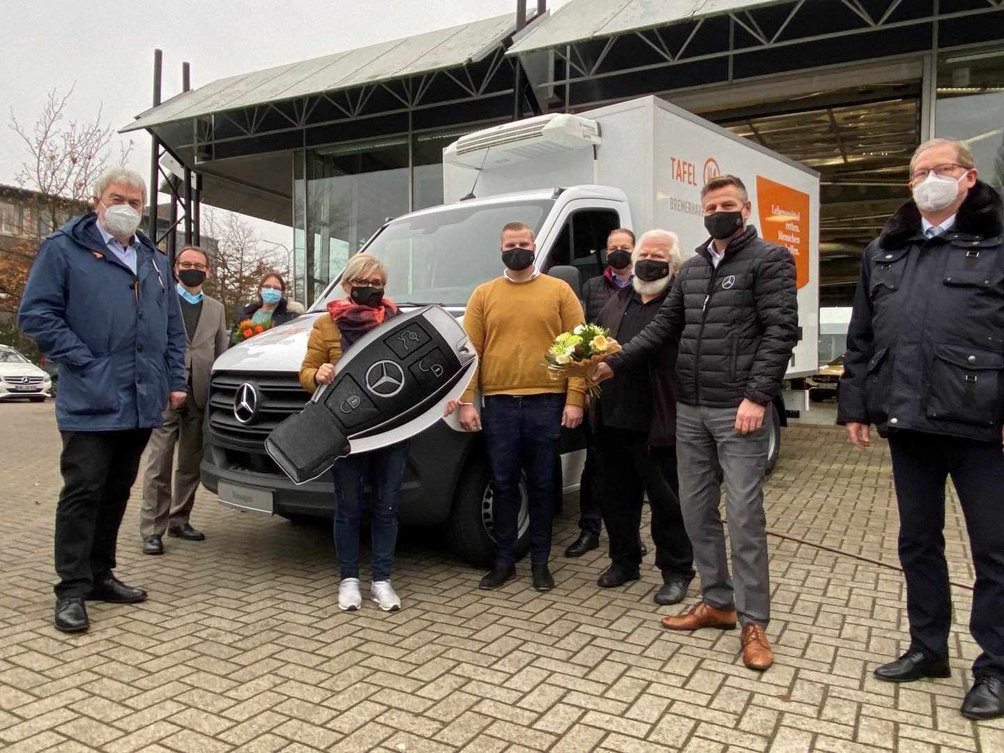 Bremerhaven. Jede soziale Bewegung braucht einen Motor - ein nagelneuer Mercedes-Benz Sprinter mit Kiesling Kühlkoffer „Cooler Flitzer“ sorgt künftig bei der Bremerhavener Tafel für mehr Mobilität. Für die Gesamtfinanzierung sorgten Mercedes-Benz, der Magistrat der Stadt Bremerhaven und die Bremerhavener Volkshilfe e.V. je zu einem Drittel. Das Fahrzeug wurde am 02. November 2020 im Center Bremerhaven der Mercedes-Benz Niederlassung Bremen übergeben.
